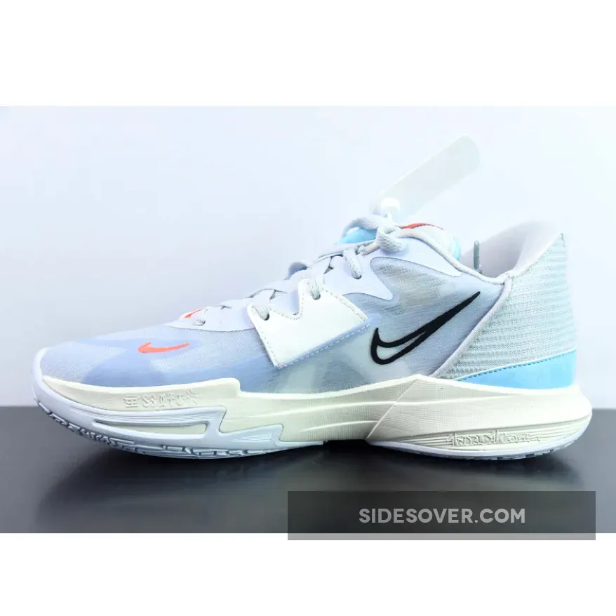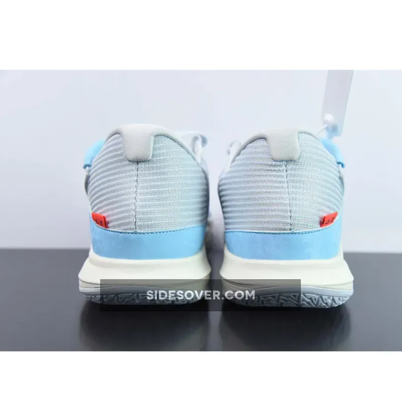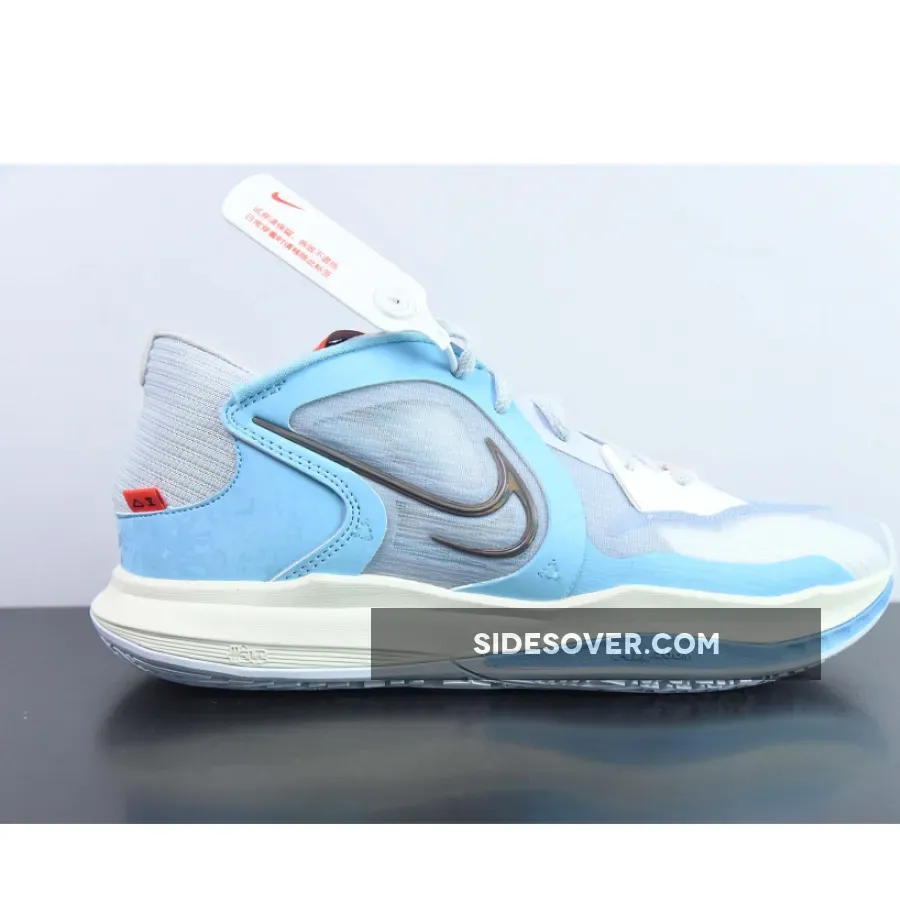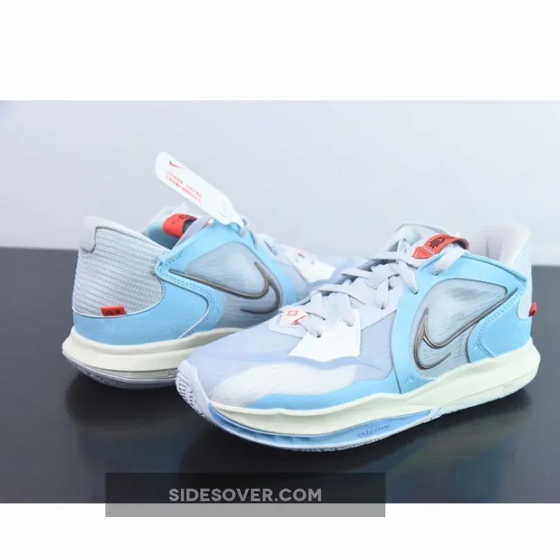 This pair boasts a fashionable colourway patterned after the Brooklyn Nets City Edition jerseys. The lightweight textile upper is dressed in tonal grey and complemented with sky blue accents. A creative multicoloured metallic take on the Swoosh and hints of white leather complete the eye-catching design.Meanwhile, fan-favourite Nike Kyrie 5 Low features such as the snug-fit laces with interlocking bands and the plush, contoured collar are retained.The icy blue tone follows onto the midsole and liner, while additional hits of gold outline the profile Swooshes, along with fiery red elevating the tongue and lateral tags.