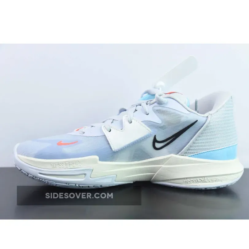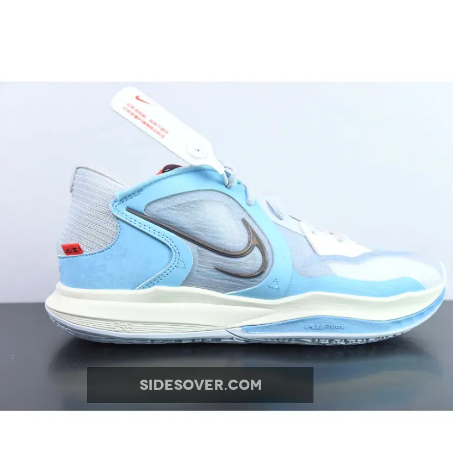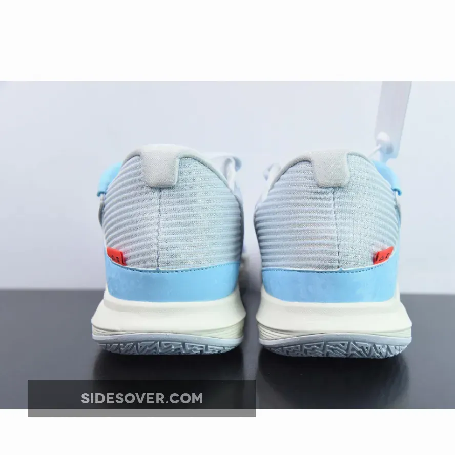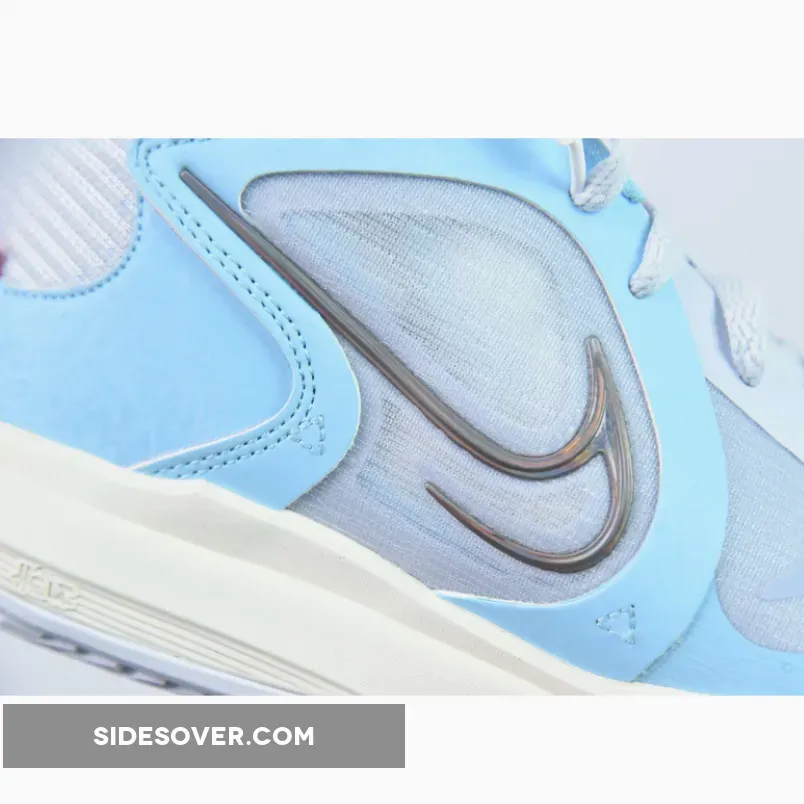 Look stylish in and out of the game with the Nike Kyrie 5 Low Nets Grey Blue. This pair boasts a fashionable colourway patterned after the Brooklyn Nets City Edition jerseys. The lightweight textile upper is dressed in tonal grey and complemented with sky blue accents. A creative multicoloured metallic take on the Swoosh and hints of white leather complete the eye-catching design.