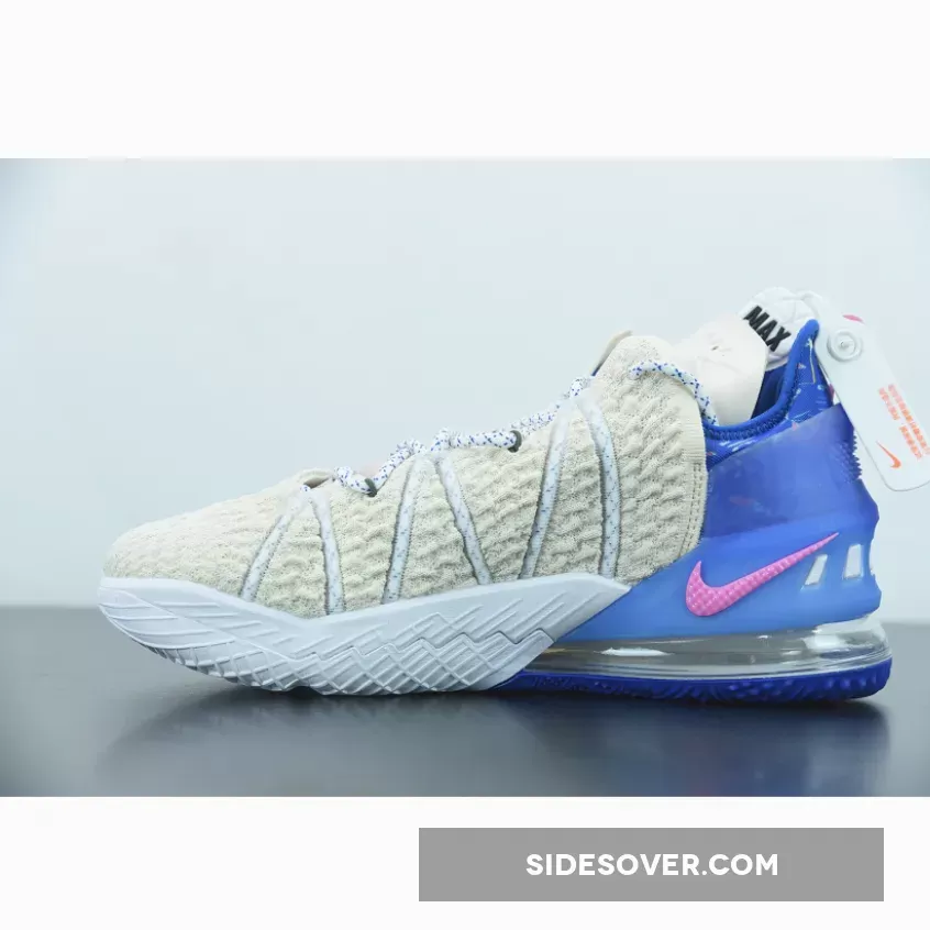 This Nike LeBron 18 features a Neutral Sand finish on the Knitposite 2.0 upper reinforced with a cable-inspired rib cage that extends down to the footbed.