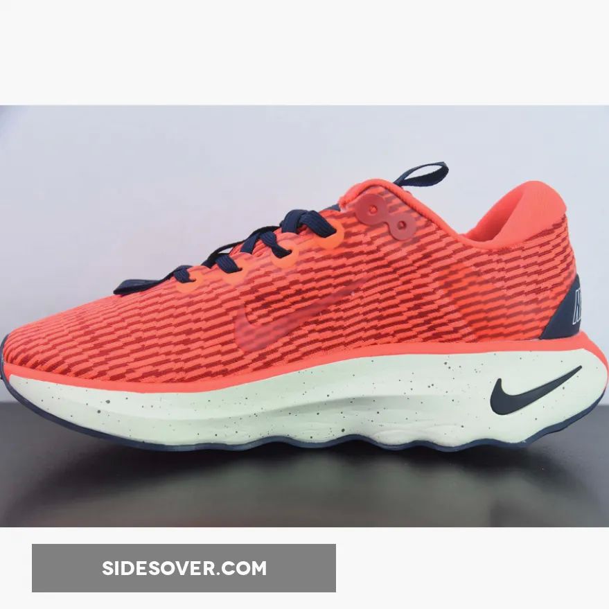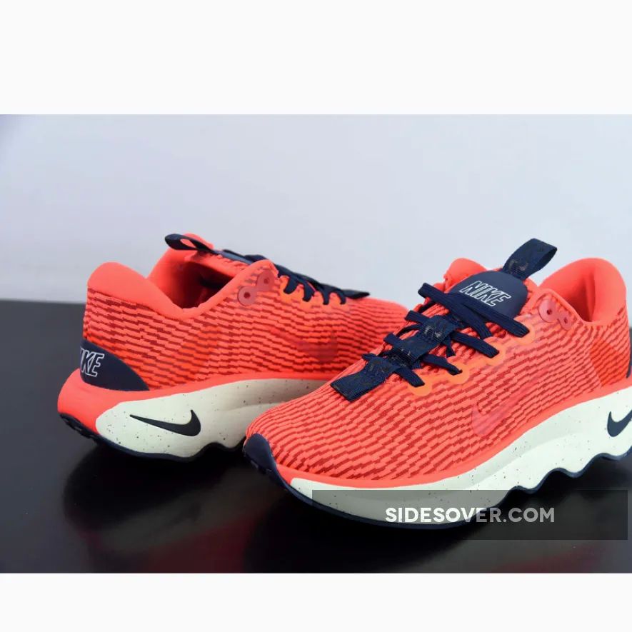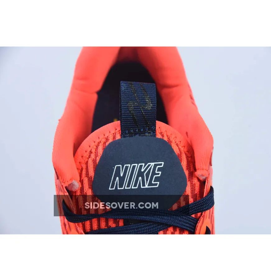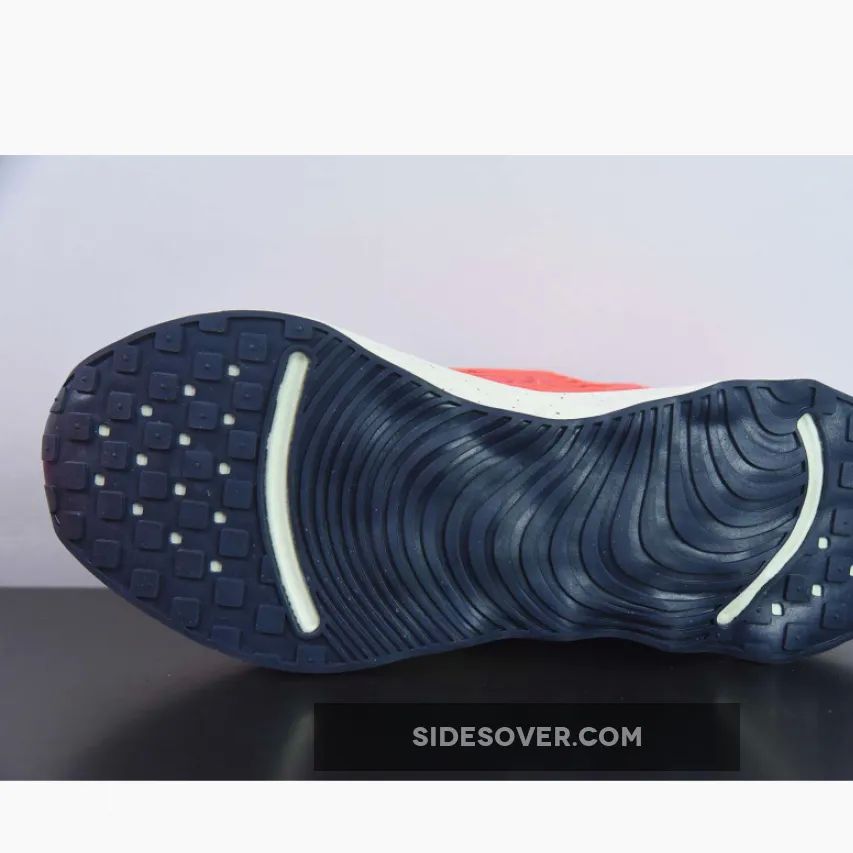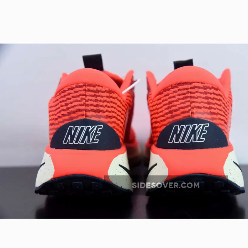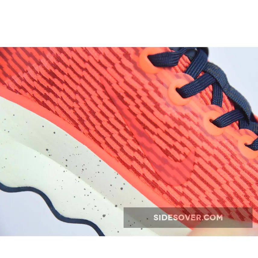 This colourway features a vibrant orange lightweight mesh upper with navy accents on the laces, midsole Swoosh, and heel counter. Speckles on the foam midsole bring more details to the shoe. Waffle traction patterns on the front and back with wavy patterns on the midfoot complete the rocker outsole.
