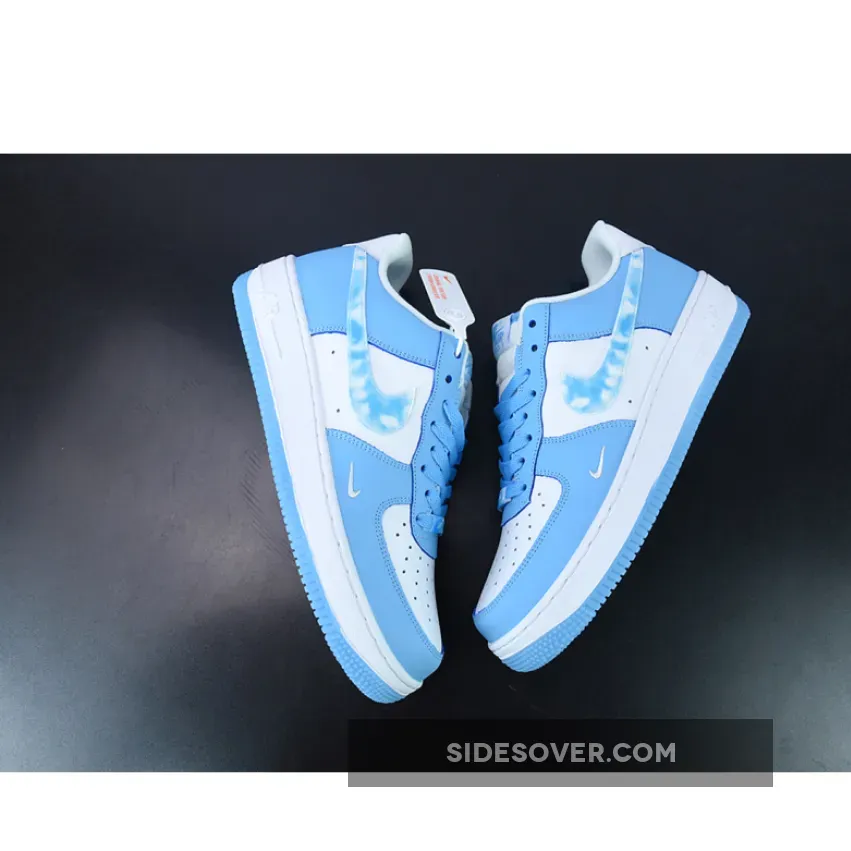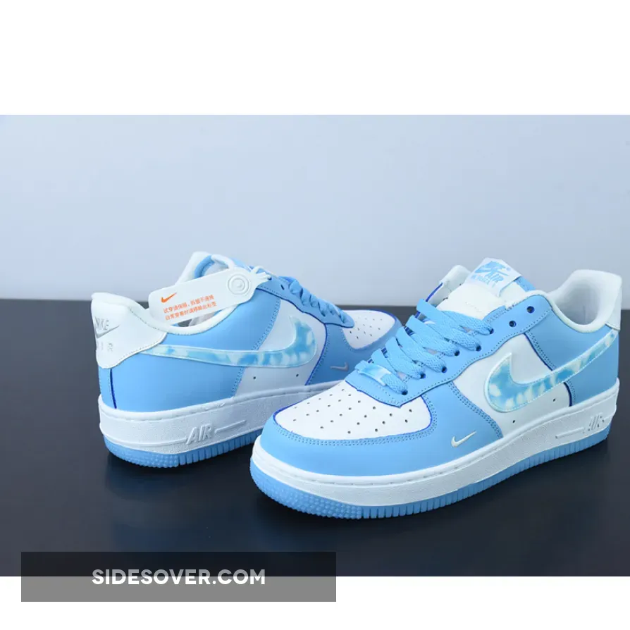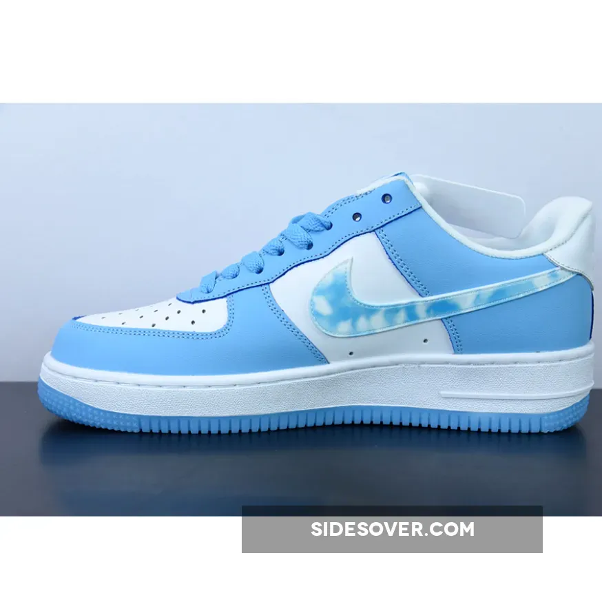 Loving the AF1 Low Nail Art! ? The Cloud design & tie-dye Swoosh are ?. Mini Chrome Swoosh & nail art insoles are a cool touch. Perfect for casual outfits. #NikeAF1 #NailArt #SneakerLove ?