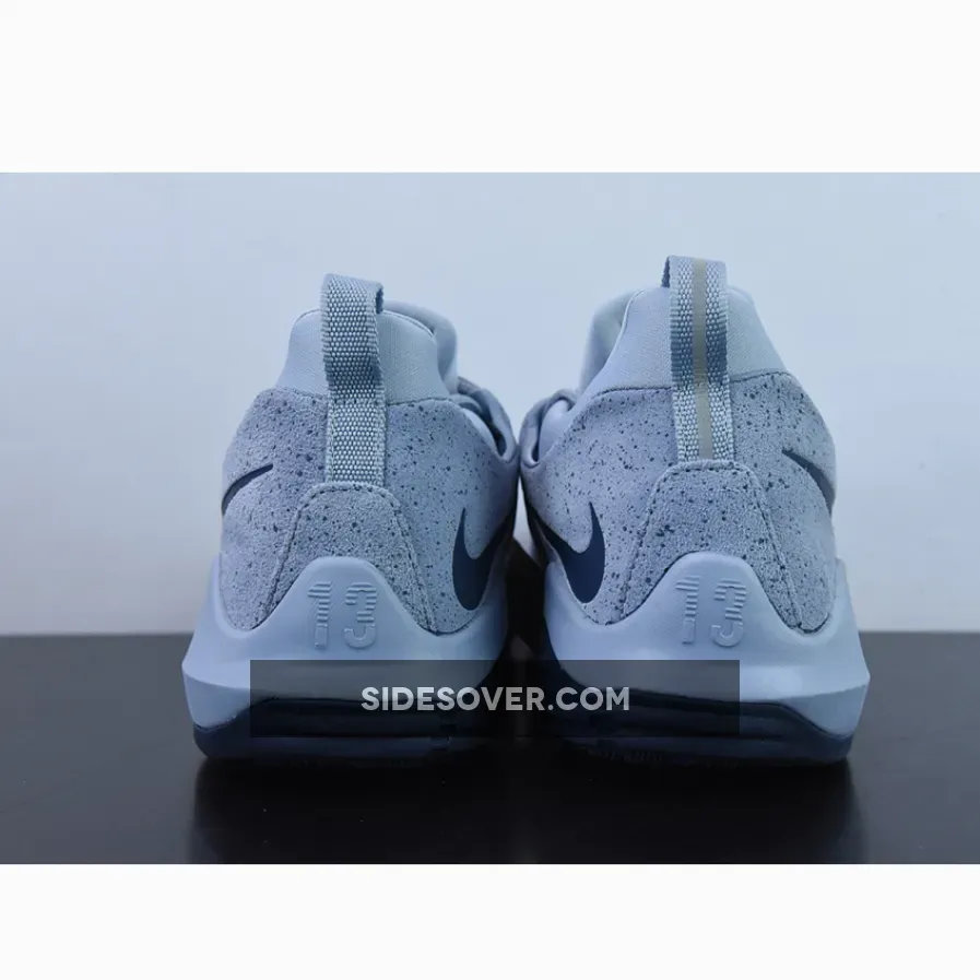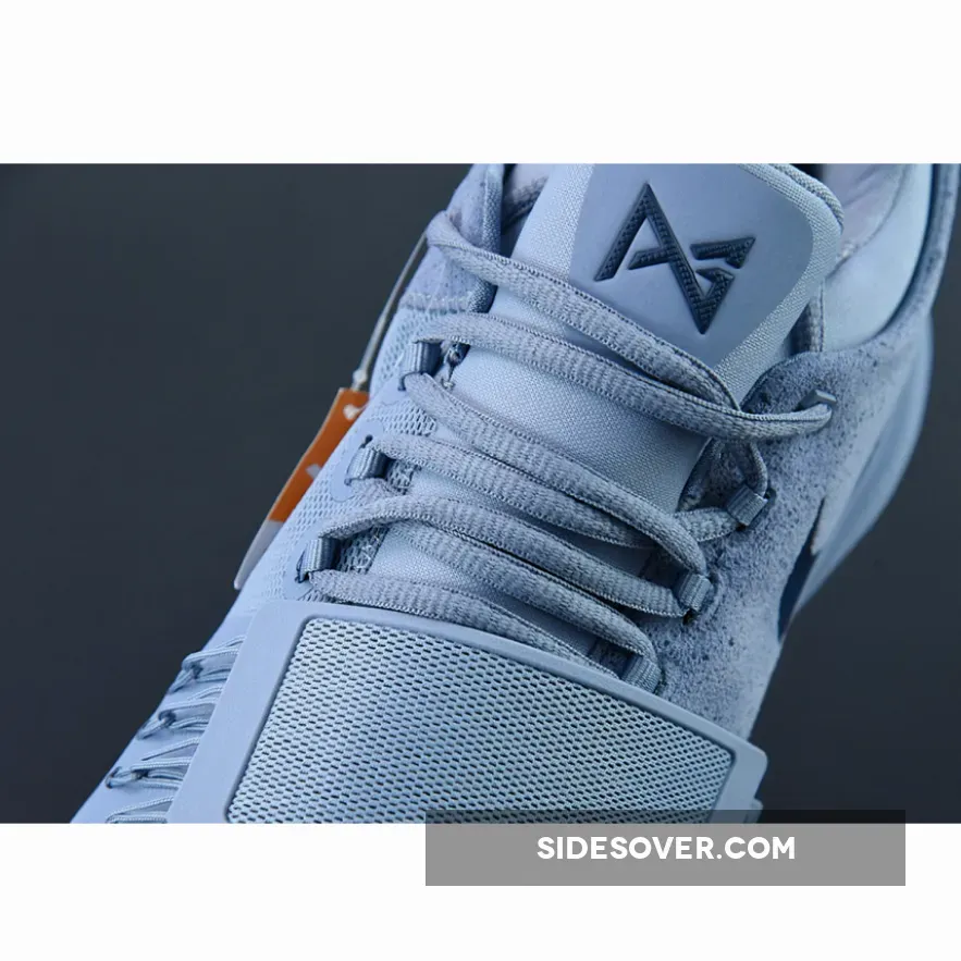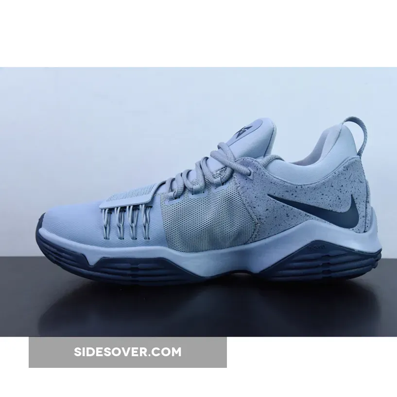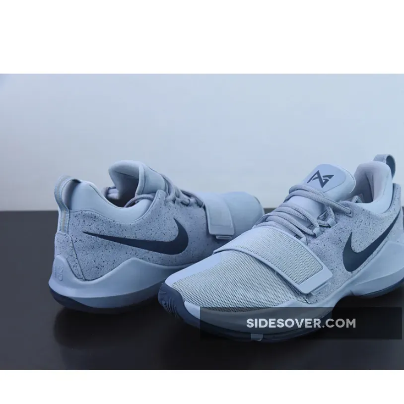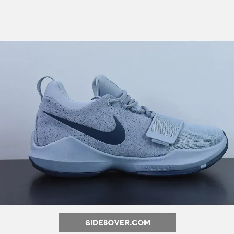 This Nike PG 1 comes dressed in a Glacier Grey and Armory Blue color combination. Looking closer you will notice that Grey takes over most of the uppers while speckled detailing lands on the panels. Following we have Armory Blue that lands on the Nike Swoosh, PG logo and across the outsole.