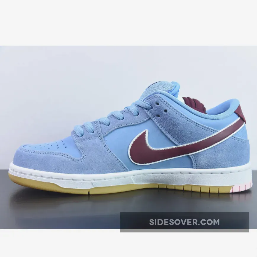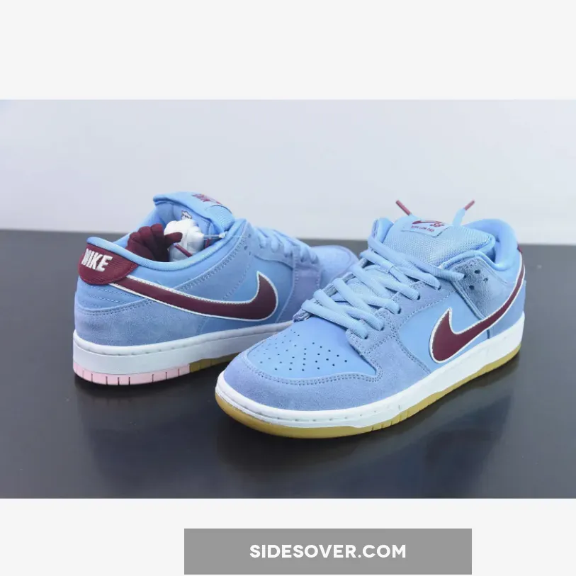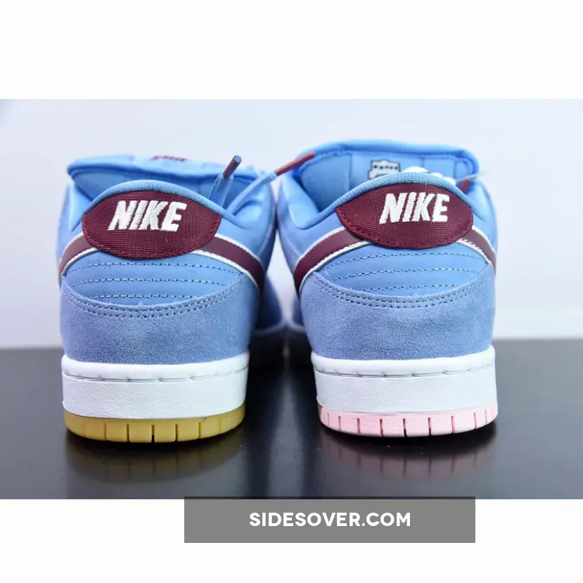 The twenty-year-old Nike SB Dunk Low is paying homage to famous baseball teams. Introducing the Nike SB Dunk Low Phillies. This SB Dunk Low features the Phillies’ signature red, white and blue team colours. The entire upper is covered in University Blue from heel to toe, including the mesh tongue and the laces. The only variation you’ll find is the material. Smooth leather is used for the base while the overlays are a rich suede. The signature profile Swooshes on the medial and lateral sides of the shoe are a striking maroon-like Team Red outlined with white. The same Team Red can be found on the shoe’s heel tab bearing an embroidered white Nike text branding.
