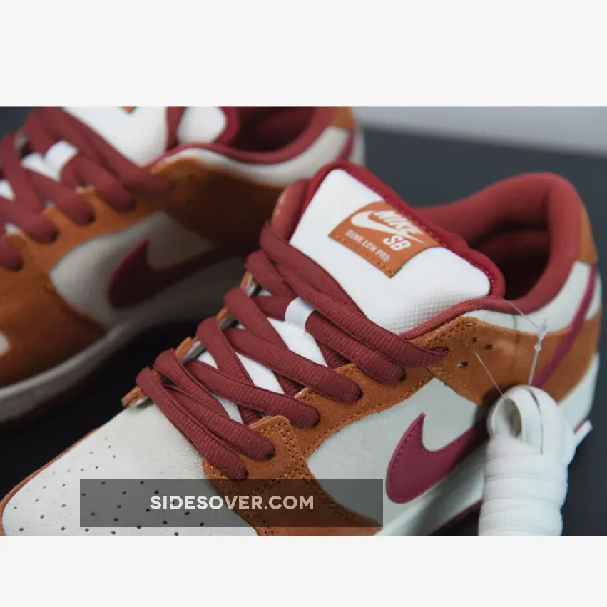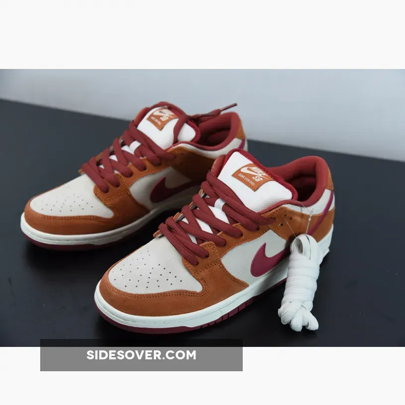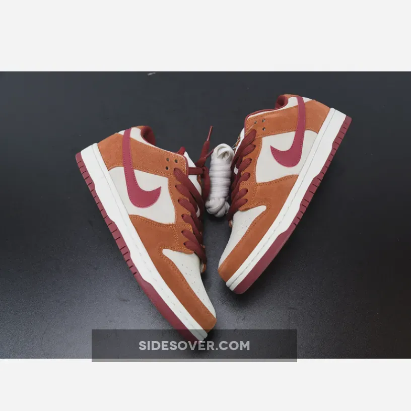 Crafted from a slew of ultra premium materials including smooth suede, luxe leather, and neat nubuck, the Dunk Low Pro Dark Russet is painted in one of the most unique colour schemes the model has ever seen. A clean off-white base contrasts again deep orange panels, while rich red hues hit the laces, sockliner, and the Swoosh logos that shoots across the lateral and medial side panels. “Nike” branding hits the tongue and heel, and to round it all off, classic perforations arrive on the toe box, completing the low cut look that we all know and love.