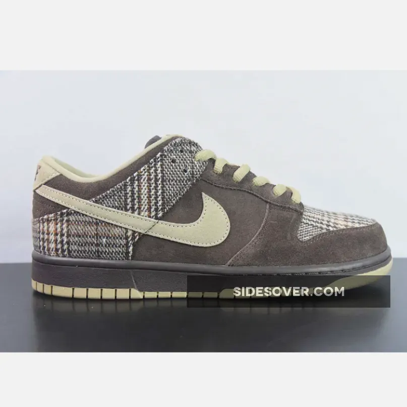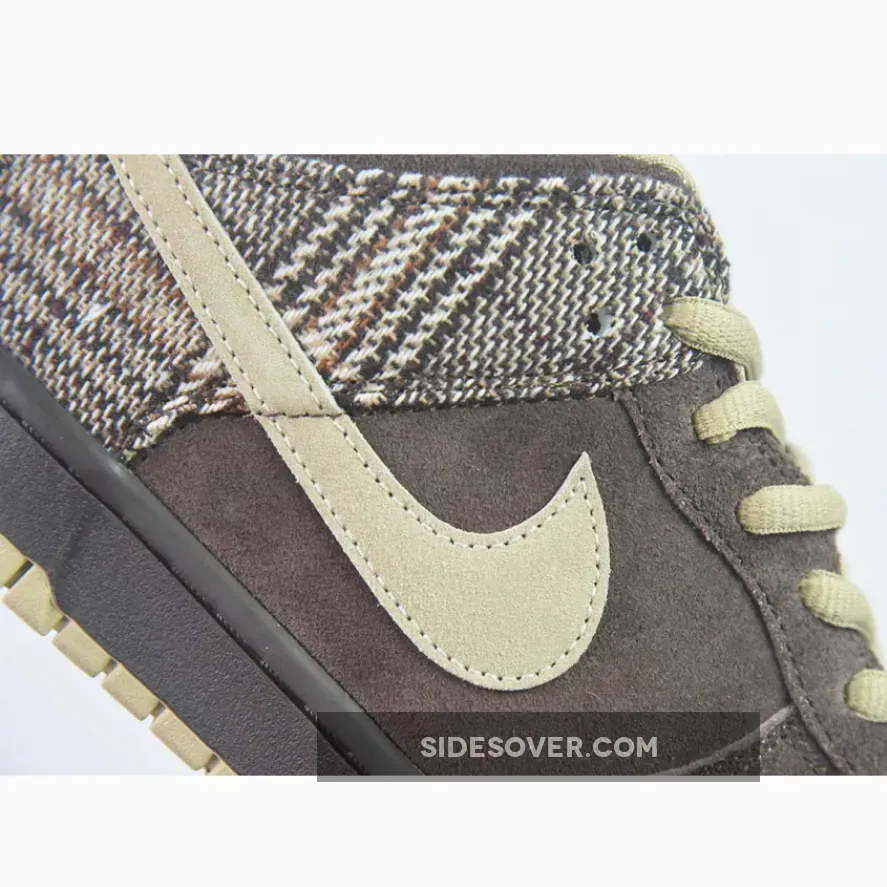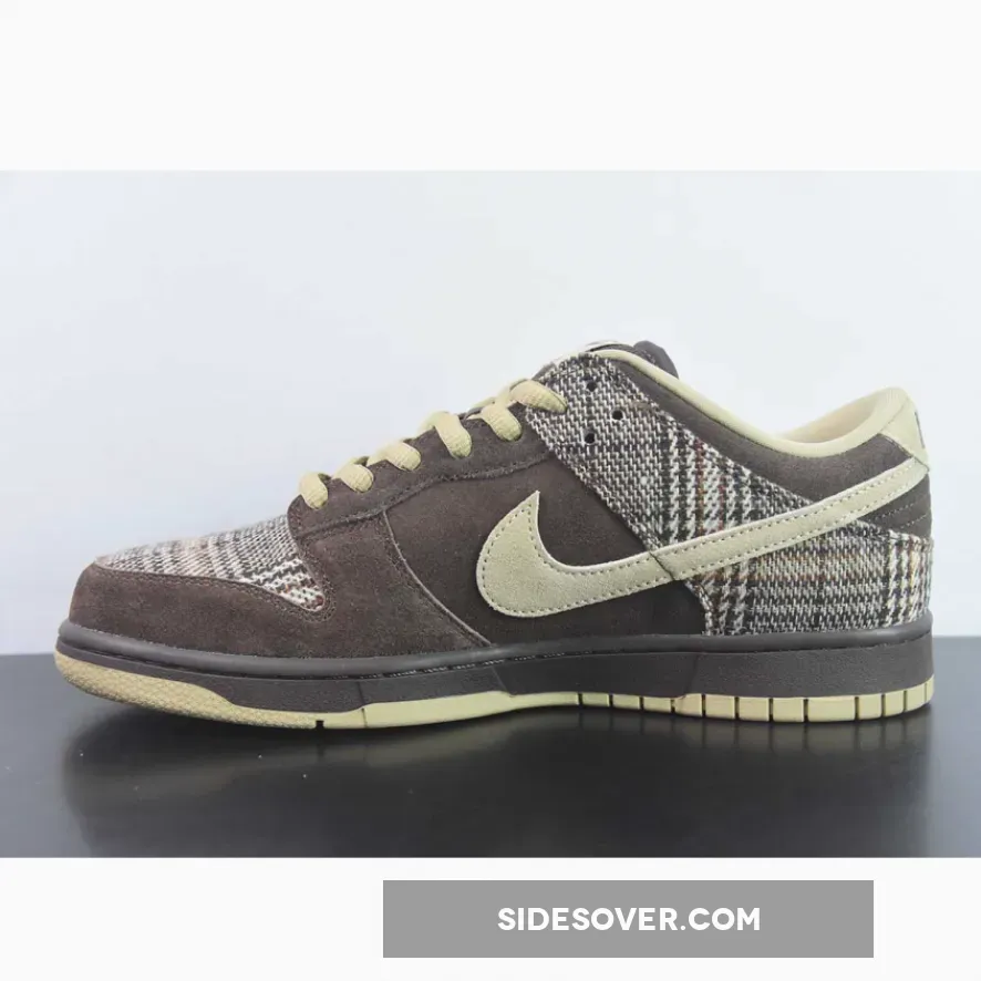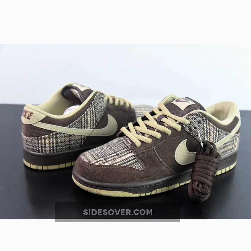 Nike SB unleashed a high-top and low-top version of the Nike SB Dunk in a ‘Tweed’ motif, which featured a brown/tan suede colorway with a tweed wool material on the toe and heel of the shoe. It’s quite different from this sample version of the Nike SB Dunk Low ‘Tweed’, which features more of a flannel plaid pattern and the use or red and navy blue.