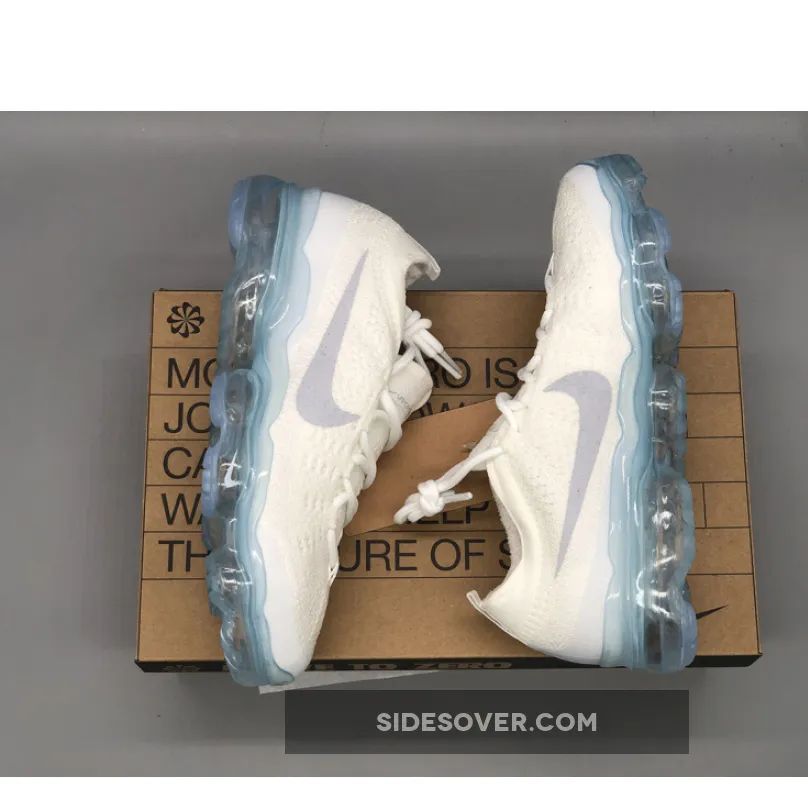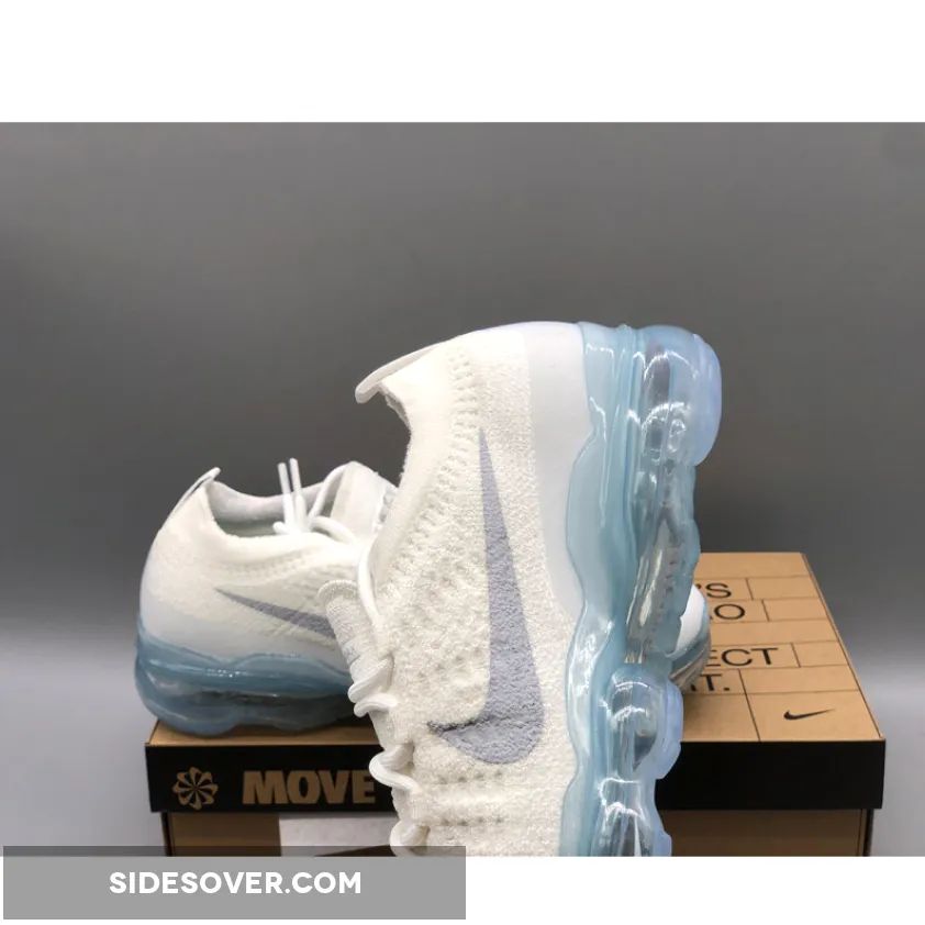 Elsewhere, the brunt of the upper is clothed in white, with the signature VaporMax bottom opting for a icy blue finish.