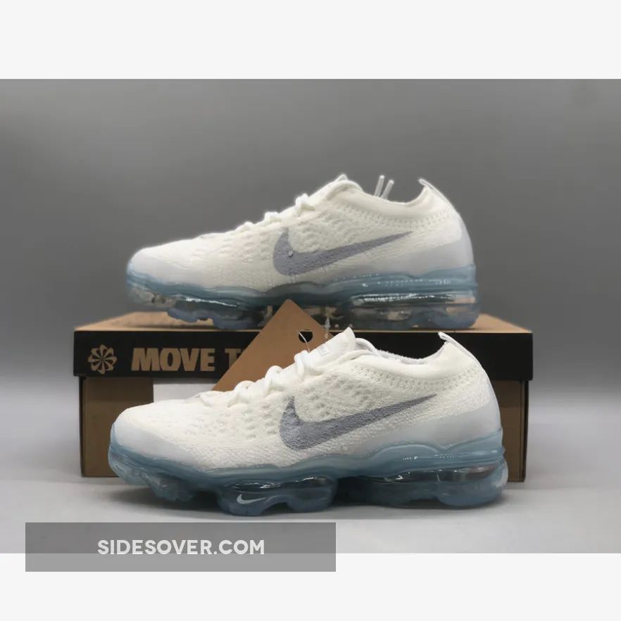 This Nike Air VaporMax 2023 comes dressed in a White, Pure Platinum, and Metallic Silver color combination. Constructed with a Flyknit upper while using recycled materials. Nike’s pinwheel logo appears on the insoles, and the iconic Swoosh logos land on the sides and lateral forefoot on the full-length VaporMax sole. The titular grey is used only as an accent, highlighting the Swoosh printed onto the side.