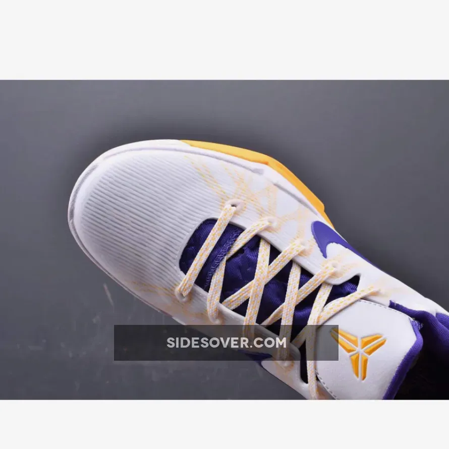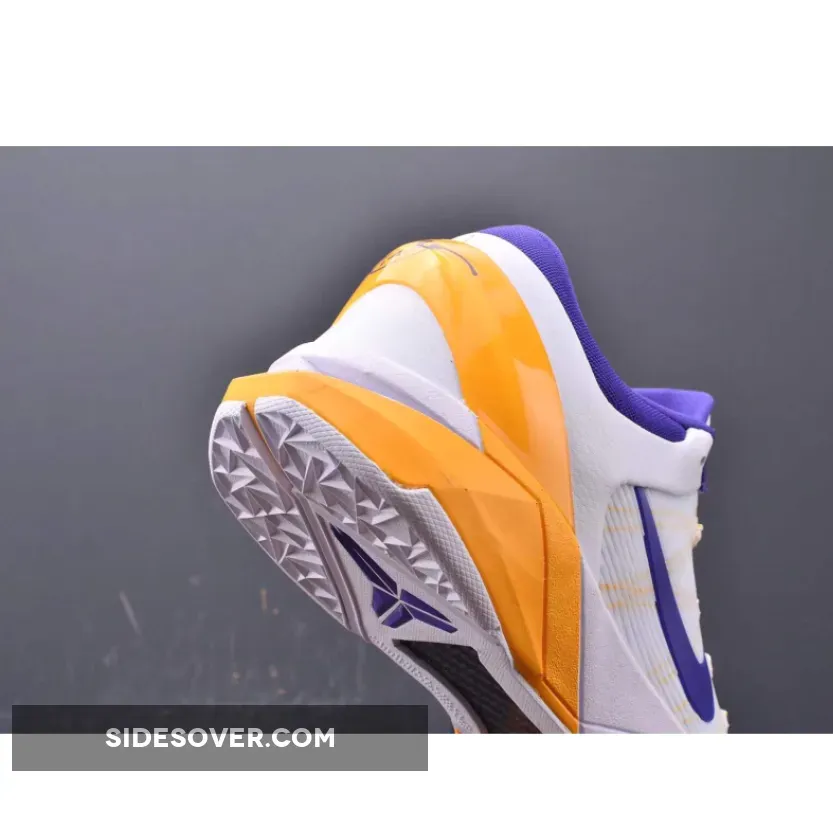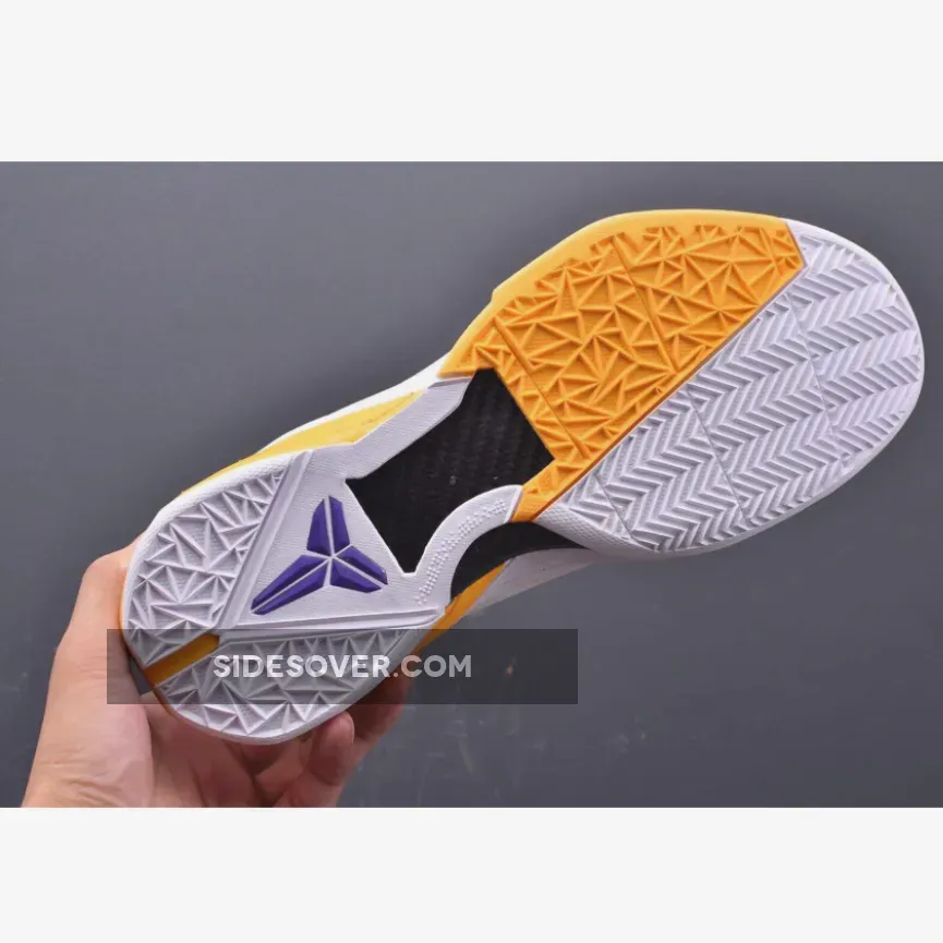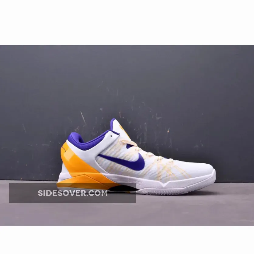 Kobe Bryant’s seventh signature shoe gets outfitted with a Los Angeles Lakers color palette, sporting a white Engineered Mesh upper with Del Sol Flywire cables. The heel counter and Zoom Air midsole also sport Del Sol, while Concord on the Swoosh and inner lining complete the team look.