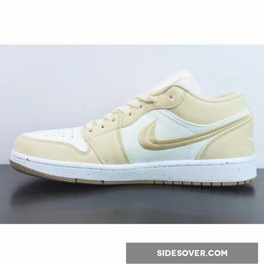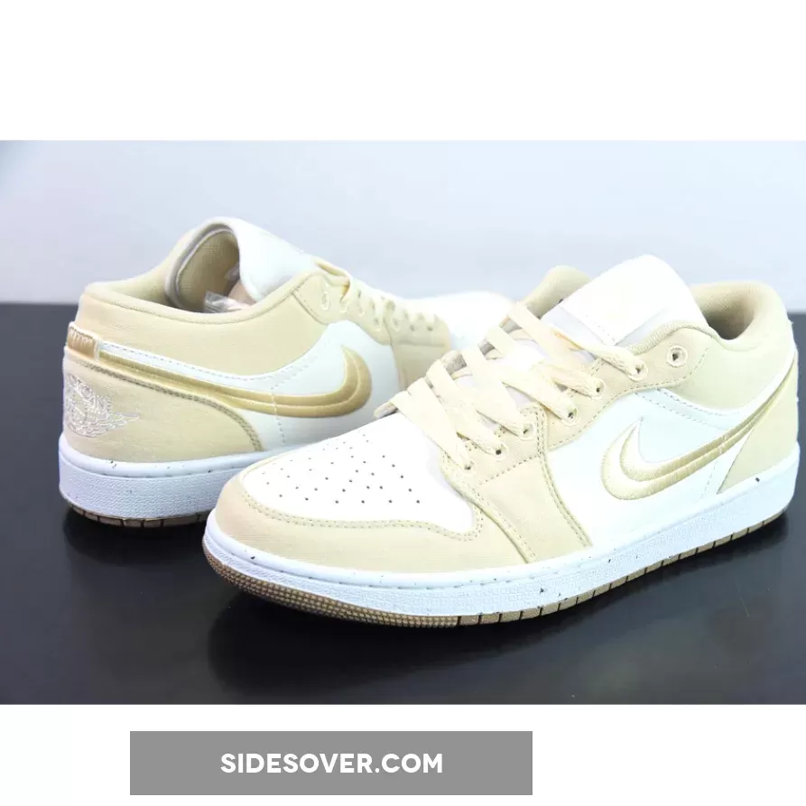Dressed in a Team Gold and Sail color scheme. This offering of the Air Jordan 1 Low comes constructed with a leather base and canvas overlays to give off a premium feel.