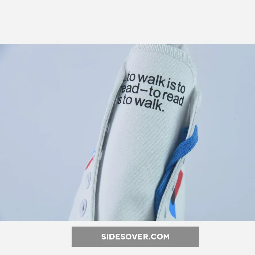 This high-top Chuck 70 has a white canvas upper and foxing with screen-printed graphics depicting eye-catching Diva Blue and Fiery Red arrows pointing in different directions. What do they mean? It’s up to you. You decide where your feet will lead you. San serif black text that says “Patta Psychogeographic Practice” stands out on the medial heel, right below the iconic All Star badge. The left tongue has the following text, “.to walk is to read – to read is to walk” while the right tongue spells out “the city is an infrastructural language”.