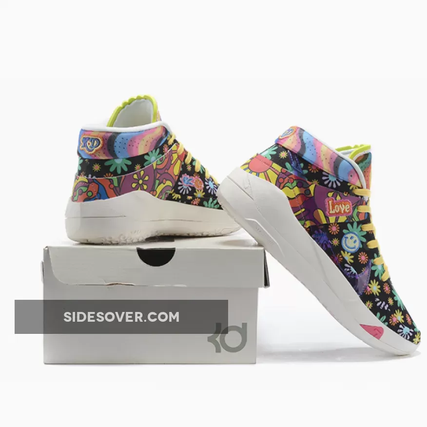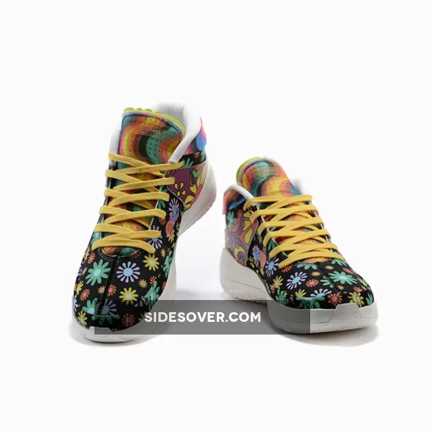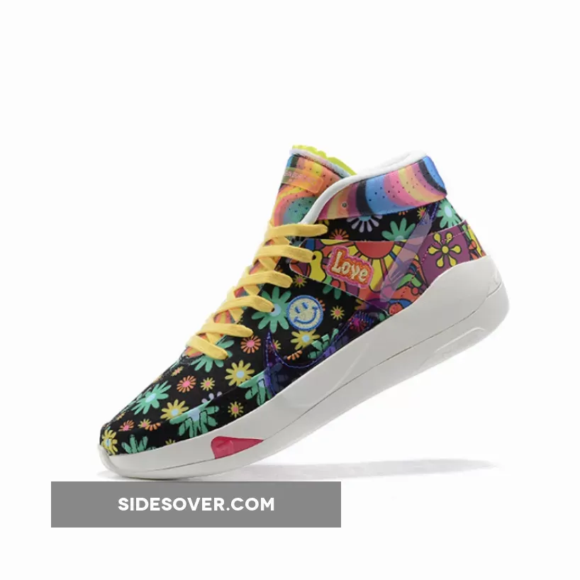 Solid colour combination and vibrant floral patterns make these KD 13 stand out. Comfortable, supportive and stylish, perfect for both casual wear and court action. Quality materials and attention to detail elevate the experience. A unique and stylish take on a classic basketball shoe.