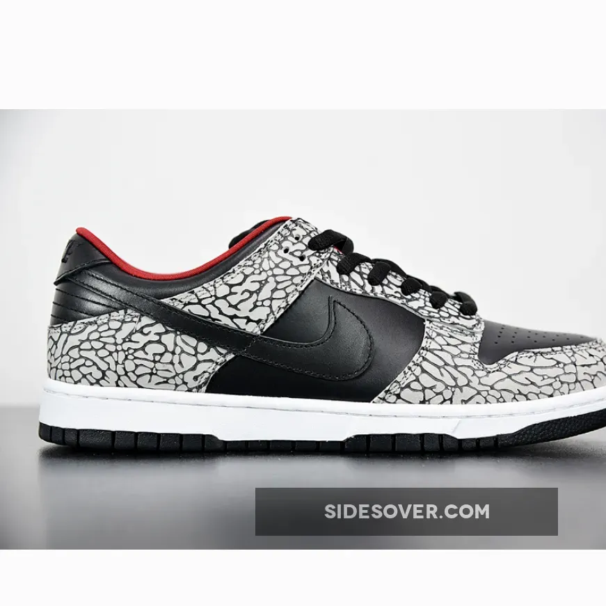 Supreme’s touch on the SB Dunk Low Pro is ?! Love the classic black leather with elephant print overlays – so unique ?. Red accents pop just right, and the whole shoe feels premium quality ?. Perfect for skating or everyday kicks ?. #NikeSB #Supreme #Sneakers #LimitedEdition