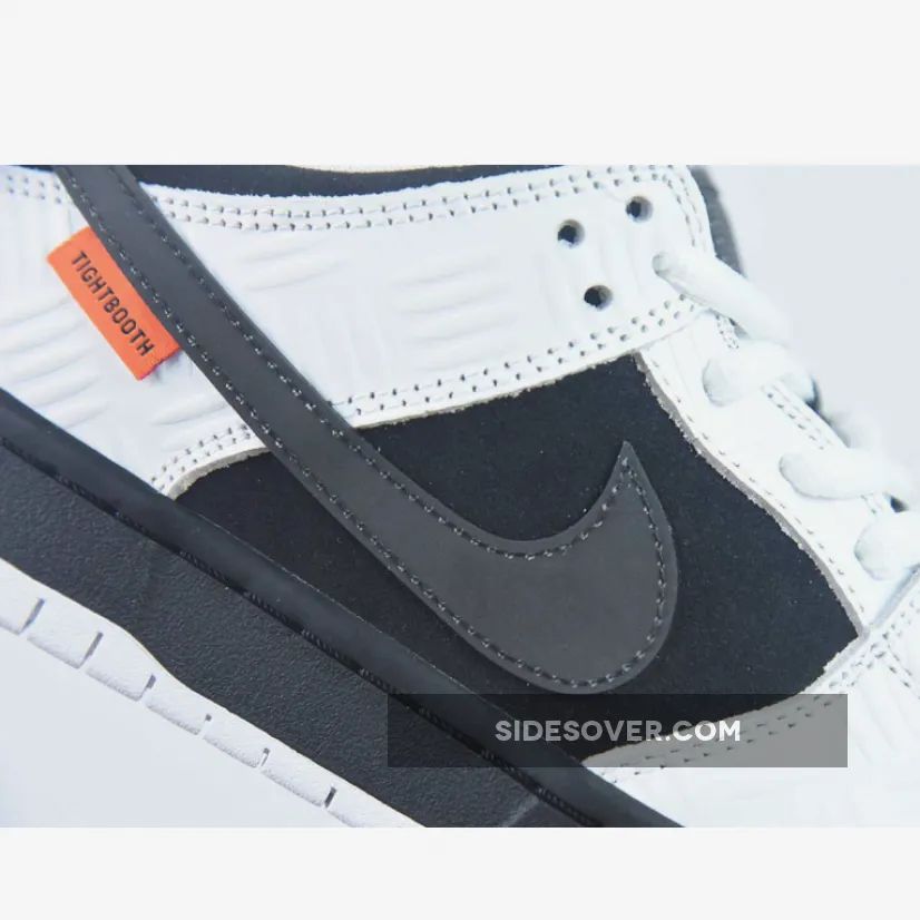 A reflective black Swoosh appears at the lateral, with the medial likely carrying the same style. The padded tongue sees a dotted arrangement joined by TIGHTBOOTH branding next to the typical Nike SB tongue tag. an orange sockliner with TIGHTBOOTH branding matches the small lateral tag below the Swoosh.