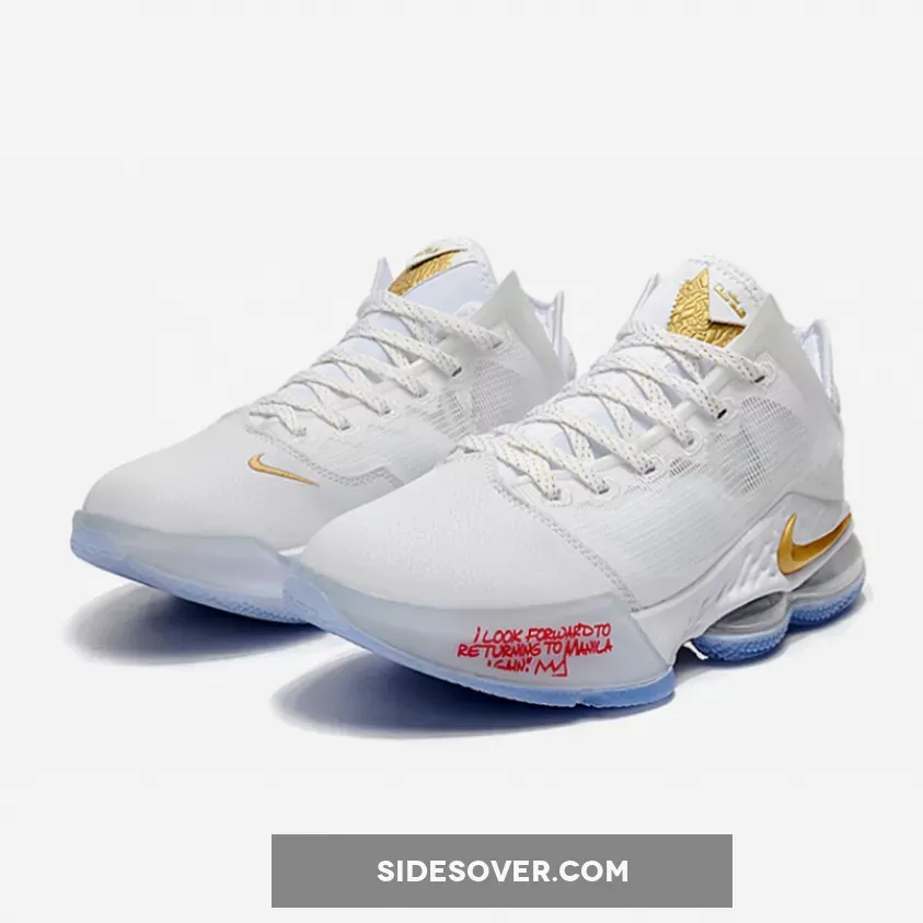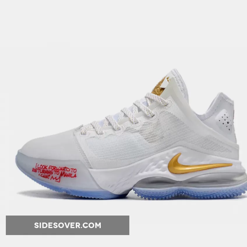 The significance of the half-lion half-dolphin figure can’t be understated, making its first appearance on the City of Manila’s coat of arms. The symbol plays a significant role in the heritage of the country, whose namesake was derived from the previous authority of the Spanish hierarchy. Centuries removed from its creation, the Ultramar lives on while hiding in plain sight, being visible in all aspects of Filipino life and culture from city flags and government seals to corporate logos. That same notion of an immortal and omnipresent existence presiding over the community is extended into the TITAN x LeBron 19 Low “Beyond the Seas” which captures the cultures unique and infinite passion for the game. Treated with a royal white upper, golden accents illuminate the medial heel Swoosh, vertical spine branding, lacelets and Ultramar shield on the upper tongue while an icy translucent outsole rounds out a majority of the construction. Having touched down in the Philippines multiple times, The King’s quotes regarding the country are inscribed on the forefoots mudguard reading, “The passion for basketball in the Philippines is incredible,” in royal blue and, “I look forward to returning to Manila again,” in bright red.