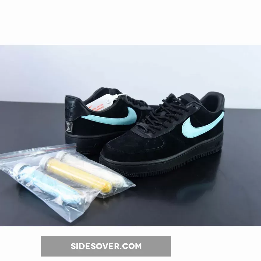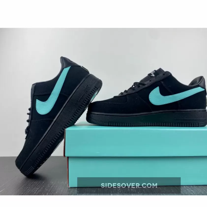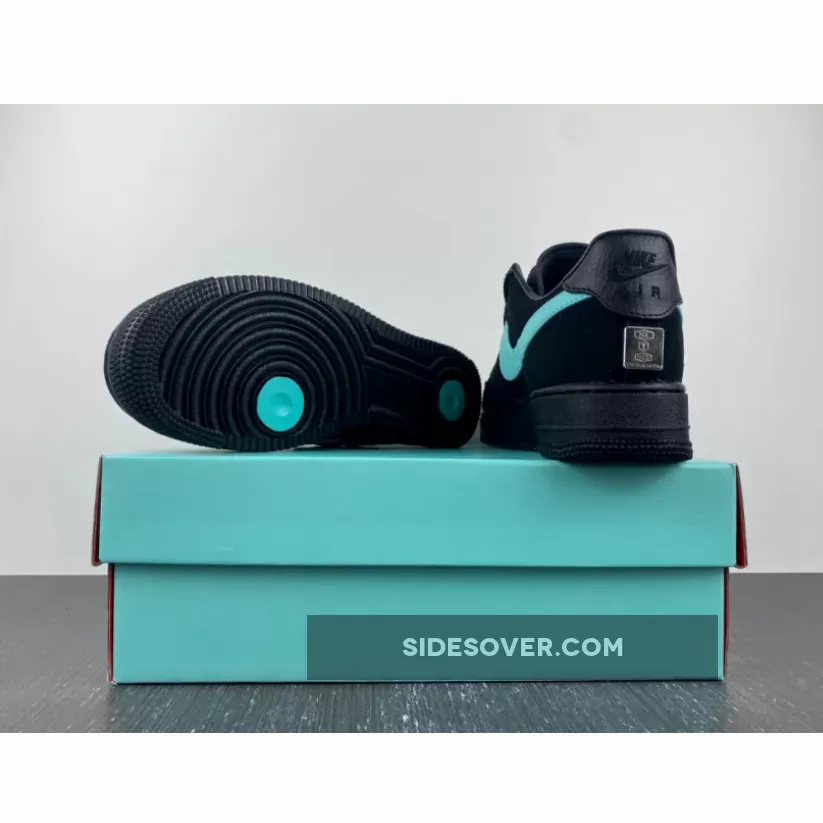 This offering of the Tiff & Co. x Nike Air Force 1 Low features a Black leather and suede base highlighted with Tiff’s iconic Teal covering the Swoosh logos and insoles, which complements the tumbled leather overlays along the eye-stay. The tongue is embossed with silver Tiff script, while the back of the heel features a silver plate stamped with Tiffany heritage icons. The shoes will also come with extra set of laces and housed in special co-branded packaging.