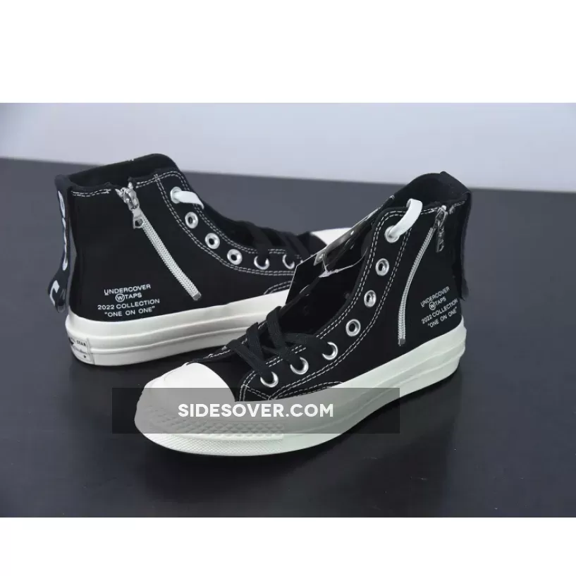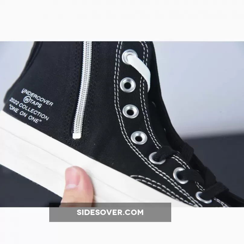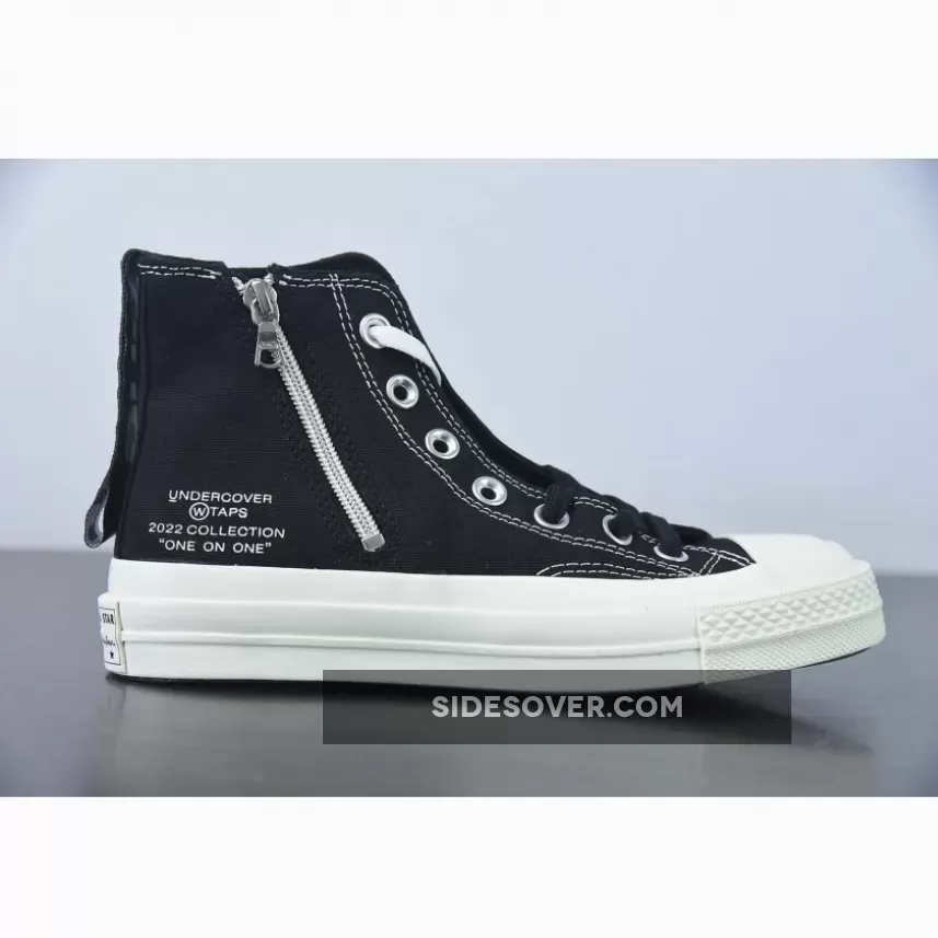 Teased since the end of 2021, this special edition Chuck Taylor High is finally ready to hit shelves. The familiar Chuck Taylor High shape is constructed of an eight eyelet cotton canvas upper backed by a classic white Converse sole unit and black Vibram outsole. Collaborative detailing begins with a diagonal zipper on the upper’s lateral next to UNDERCOVER x WTAPS “ONE ON ONE” collection branding in white. On the medial, a black and white Converse Chuck Taylor patch is featured. A special heel tab in the form of the “ONE ON ONE” ribbon rounds out the upper’s detailing while each brand’s tag arrives on the interior alongside a Converse Addict insole, completing the look.