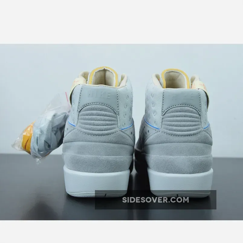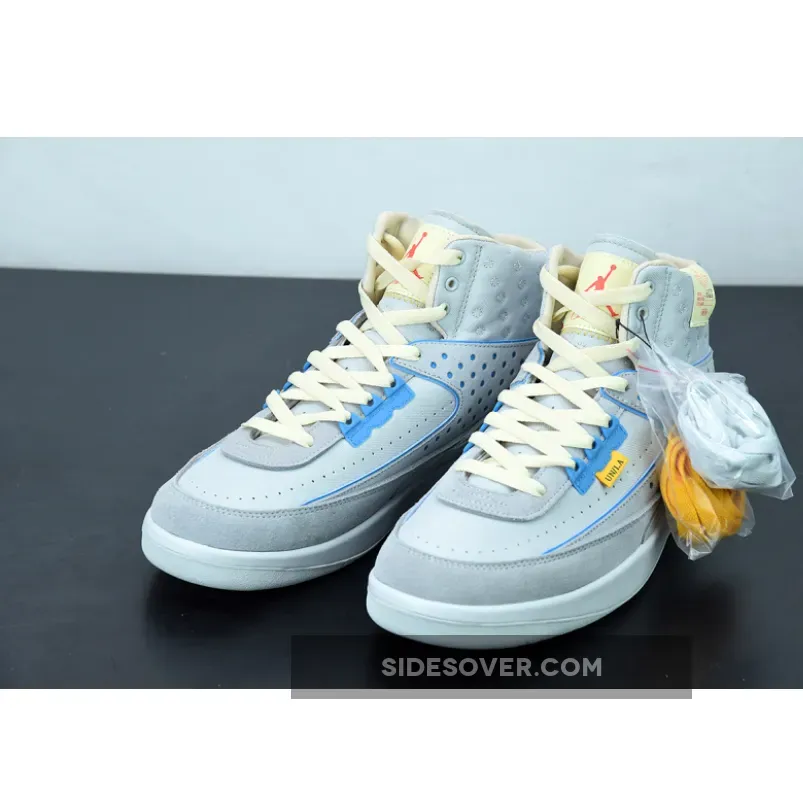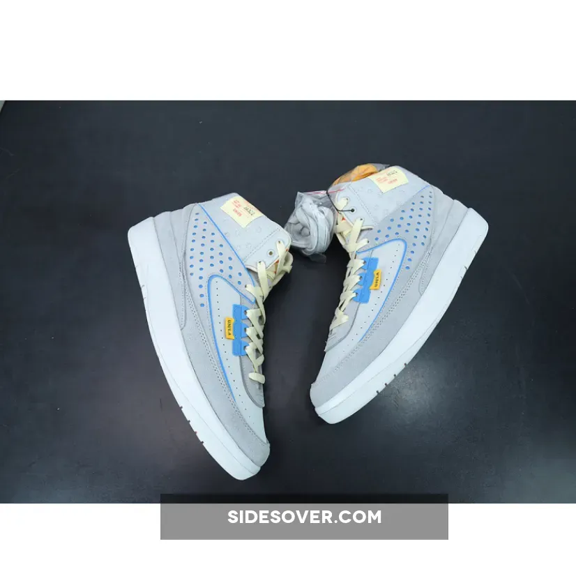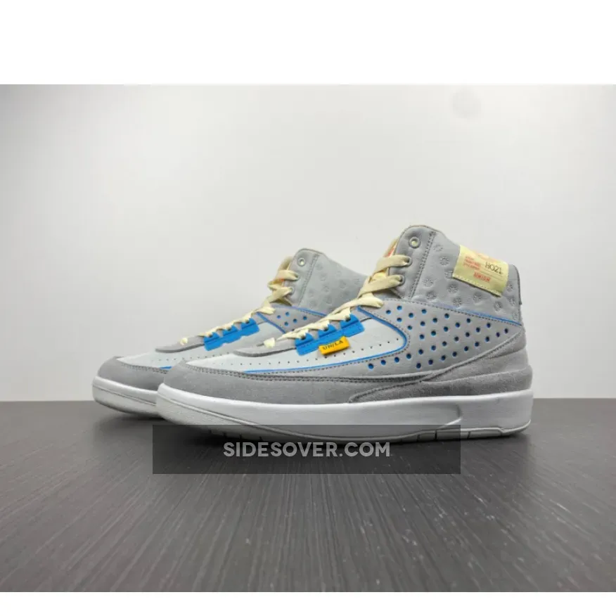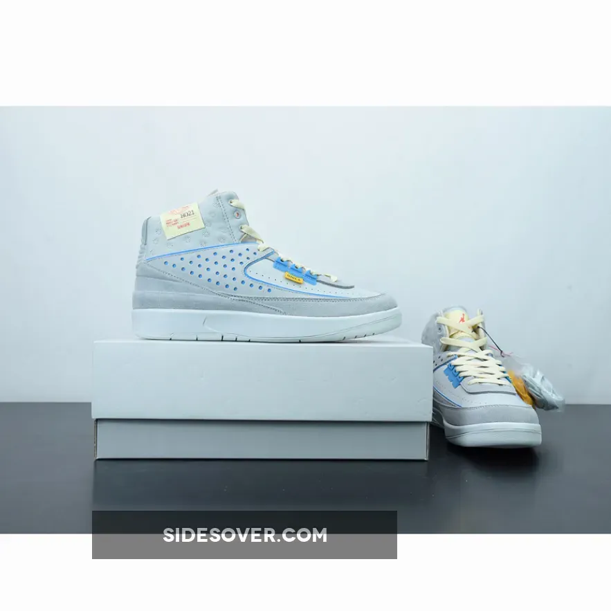 The co-branded Air Jordan 2s arrive in an icy gray-blue colorway with hints of beige and yellow on the laces, insole, and lining. Union branding is present on the tongue, insoles, and sides of the ankle collar. Union’s Air Jordan 2 is dubbed “Gray Fog.”