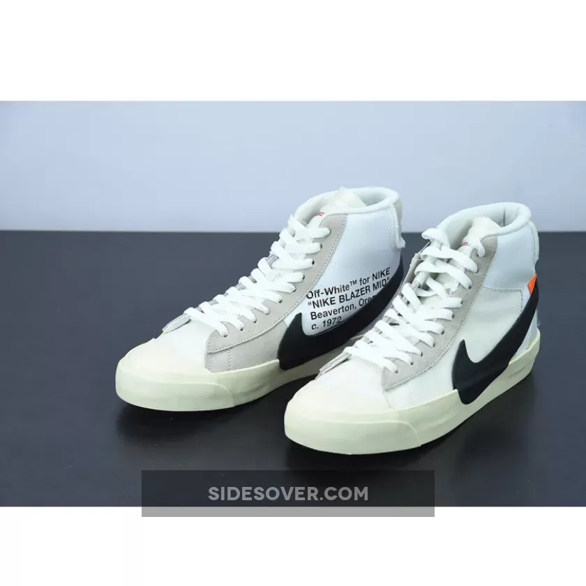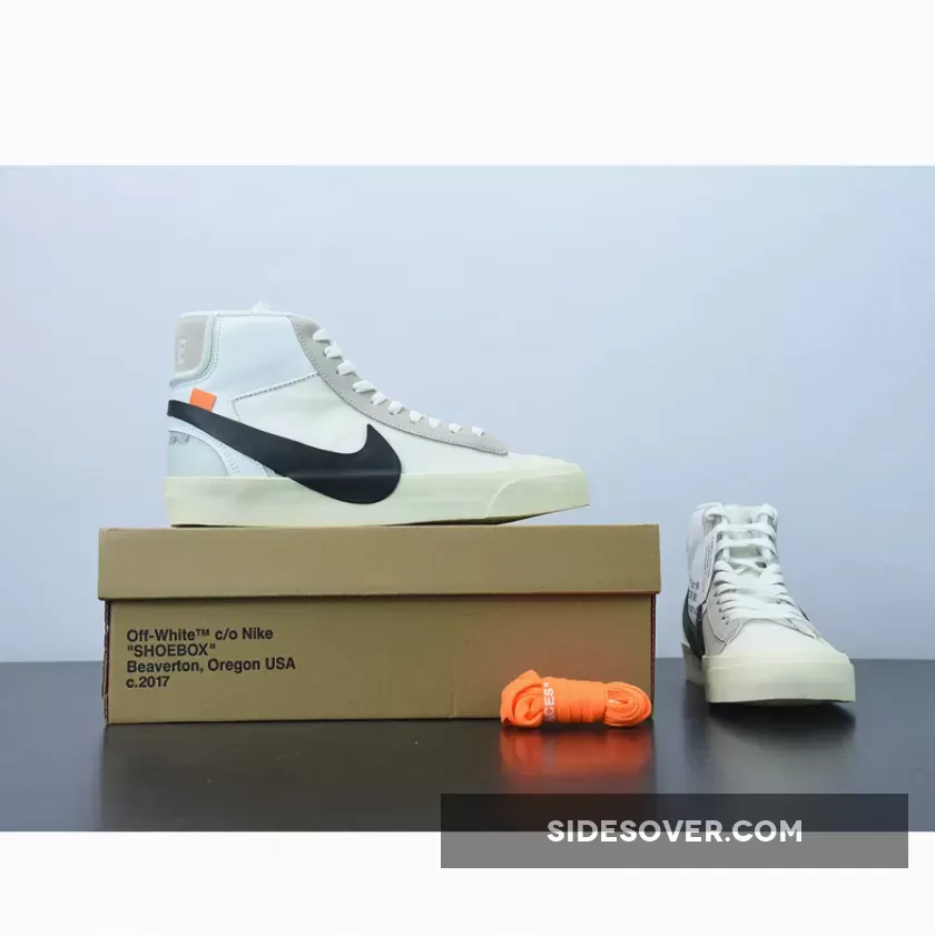 Phenomenal design! 🤯 The Off-White x Nike Blazer Mid offers a fresh take on the classic silhouette. White leather upper with mesh overlays looks premium. The oversized black Swoosh is definitely a statement piece. 👟 Love the 4 lace options too! 🤩 #MustHaveSneakers #NikeBlazerMid #OffWhiteXNike 👟