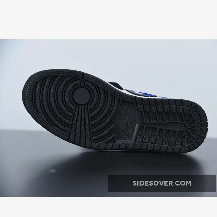 You already saw the Air Jordan 1 High CMFT “Sisterhood”, that utilized extra padding on the ankle ad metallic studs to attached all the layers, but even more eye-opening is the Air Jordan 1 Mid of that set – seen here in an attractive game royal/black-white colorway with thick roped laces jutting out from key stitch-points of the upper. Black, royal, and white ropes are seen plunged through where the leather panels meet at the fore-foot, ankle, and heel, while a unique all-over pattern of female ballers cover the insoles and the back of the tongue. Certainly one of the more daring surprises from Jordan Brand’s womens catalog in 2020, so we’re excited to see what else will be included in the Jordan “Sisterhood” Pack