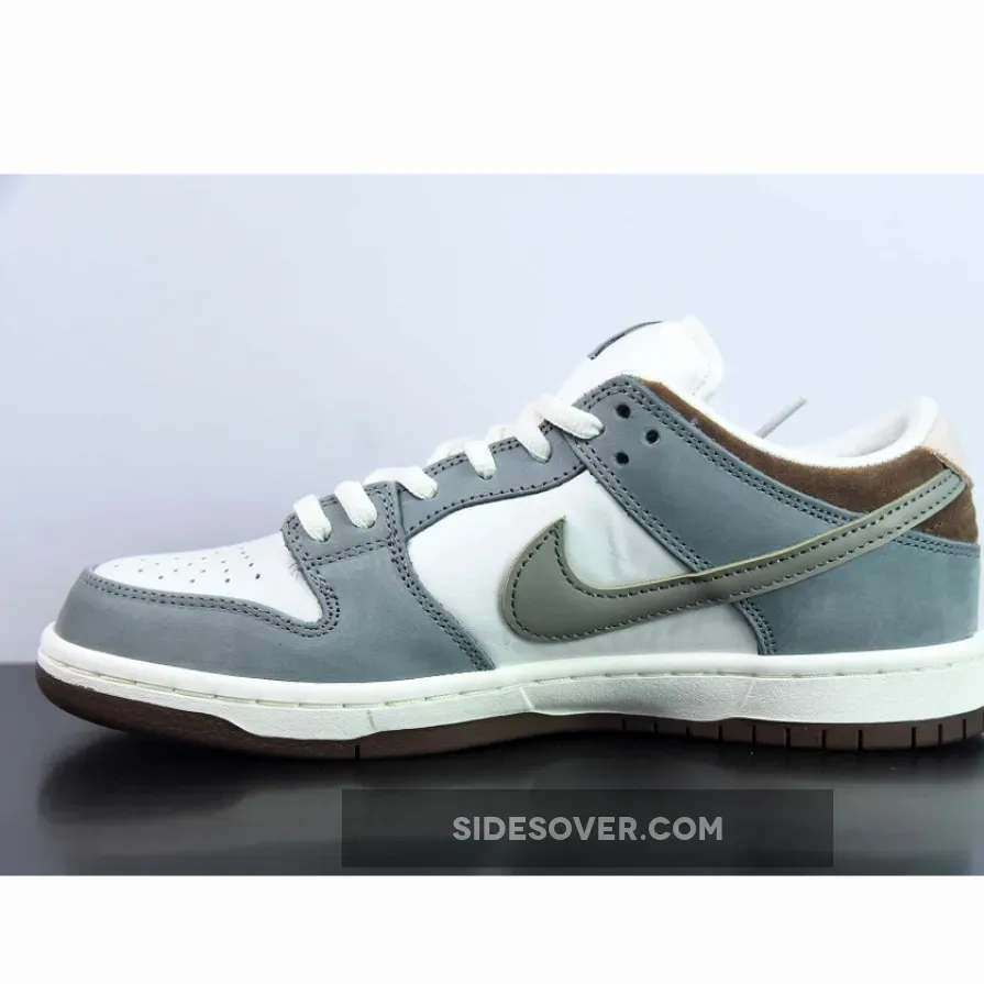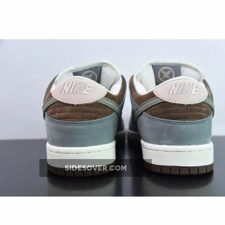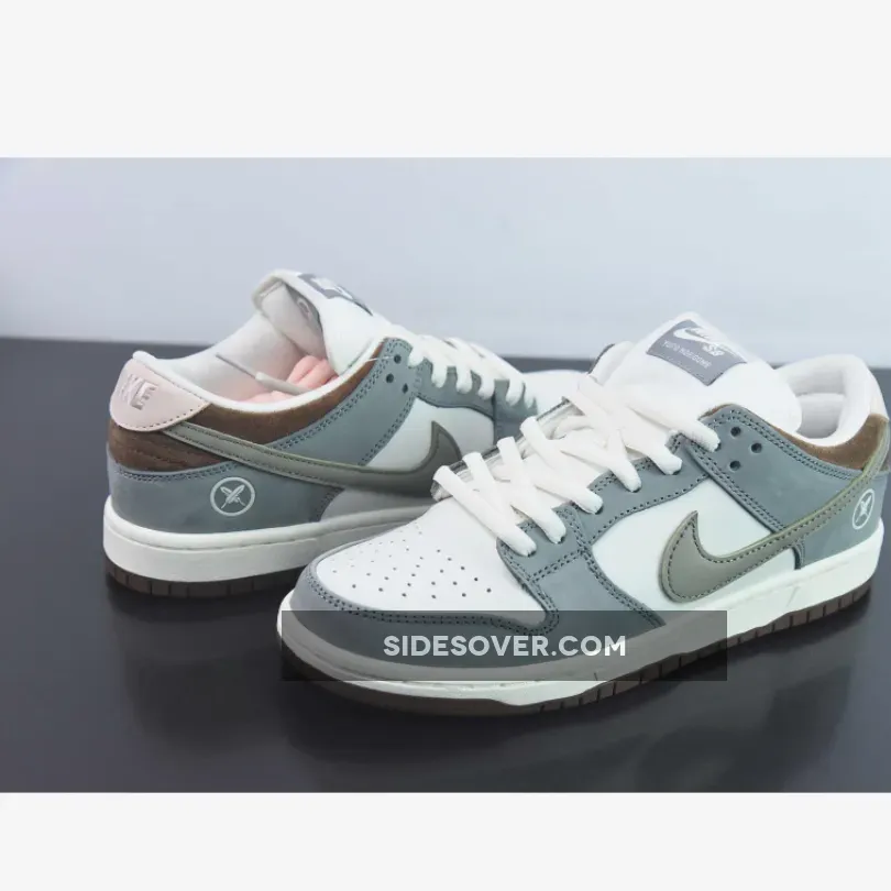 The Yuto Horigome x Nike SB Dunk Low is constructed out of leather, suede and mesh. It features a White base, Grey overlays and Chocolate Brown detailing around the collar and rubber outsole. Toe boxes, tongues and quarter panels are left colorless exteriors and come neighbored by supply suede overlays and smooth leather Swooshes that are drowned in a muted gray. The Japanese skater’s moniker replaces the usual shoe silhouette’s name under the tongue’s Nike SB branding while a cross-feather insignia is stamped to the lateral heels. A subtle touch of dusty pink arrives on the heightened parts of the heel while brown accents through the collars. Down below, the midsoles are designed with a clean white finish while the bottoms are done up with an all-brown paint job.
